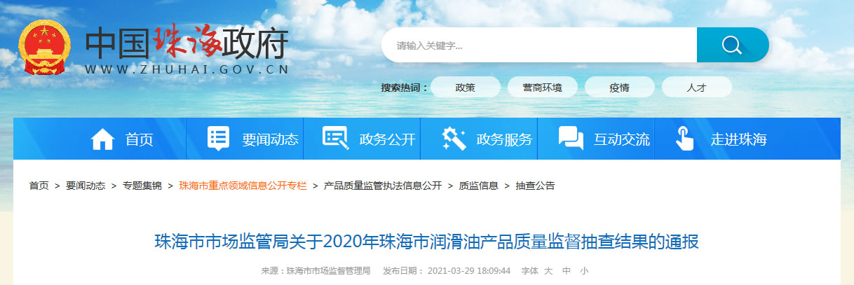 | 2020年珠海市潤(rùn)滑油產(chǎn)品質(zhì)量監(jiān)督抽查產(chǎn)品及企業(yè)名單 | ||||||